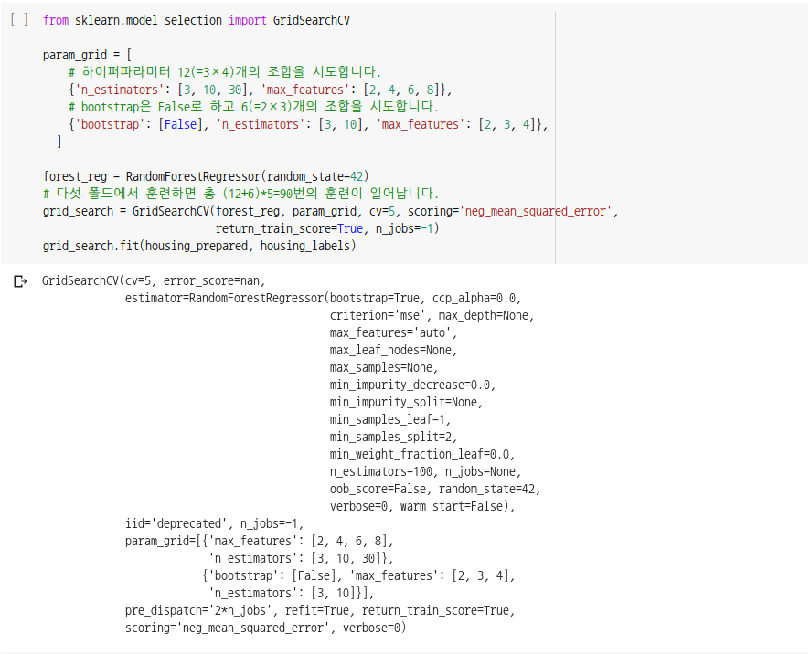들어가며 지난글에서는 학습곡선을 통해서 모델 학습이 과대적합인지 과소적합인지 파악하여 모델을 결정하는방법에 대해서 알아보았습니다. 과소적합인 경우에는 더 좋은 모델과 하이퍼파라미터를 선택하면되지만 과대적합인 경우에는 어떻게 해결해야할까요? 이번 글에서는 비용함수에 변수를 추가하여 모델을 규제하여 과대적합을 방지하는 방법에 대해서 알아보겠습니다. 목차 1. 과대적합 발생이유 2. 과대적합 해소방법 1.릿지 회귀(티호노프 규제) 2.라쏘 회귀(Lasso Regression) 3.엘라스틱넷 4.조기종료 3.1 과대적합 발생이유 과대적합이 발생하는 이유는 각 파라미터 변수들의 절댓값이 크게 설정되기 때문입니다. 아래 그림은 이후에 설명할 규제의 정도에 따른 학습결과인데 미리 이를 예로 설명하겠습니다. 오른쪽 그..