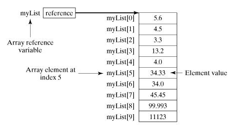 보통 자바에서는 []를 통해서 Array를 생성하며, 아래와 같이 스택 영역에 Array의 레퍼런스를 저장하고 힙 영역의 메모리에 연속적으로 데이터를 할당하고 있다. 이 때, 메모리의 크기는 고정적이다. 또한 Array에서는 같은 클래스의 인스턴스를 가지도록 하며, 관련이 없는 클래스가 할당될 경우 IllegalArgumentException이 발생한다.